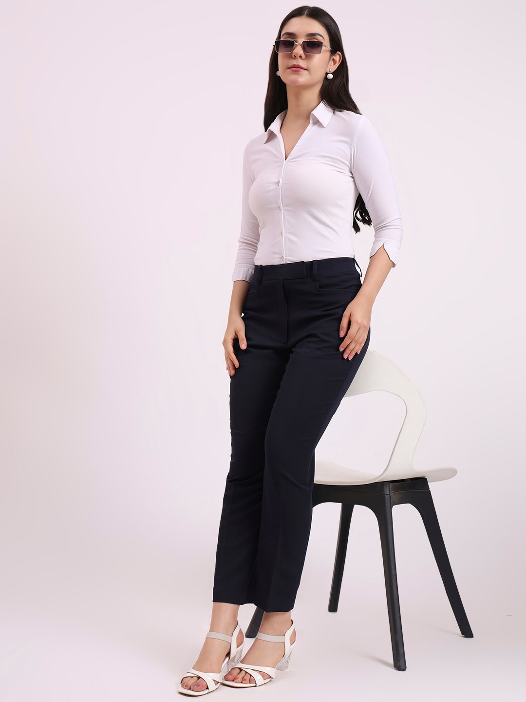 Bring elegance and comfort with the Apsra Boutique Blue Regular Fit Women’s Pant, featuring a hook closure and regular fit, ideal for office and casual wear.