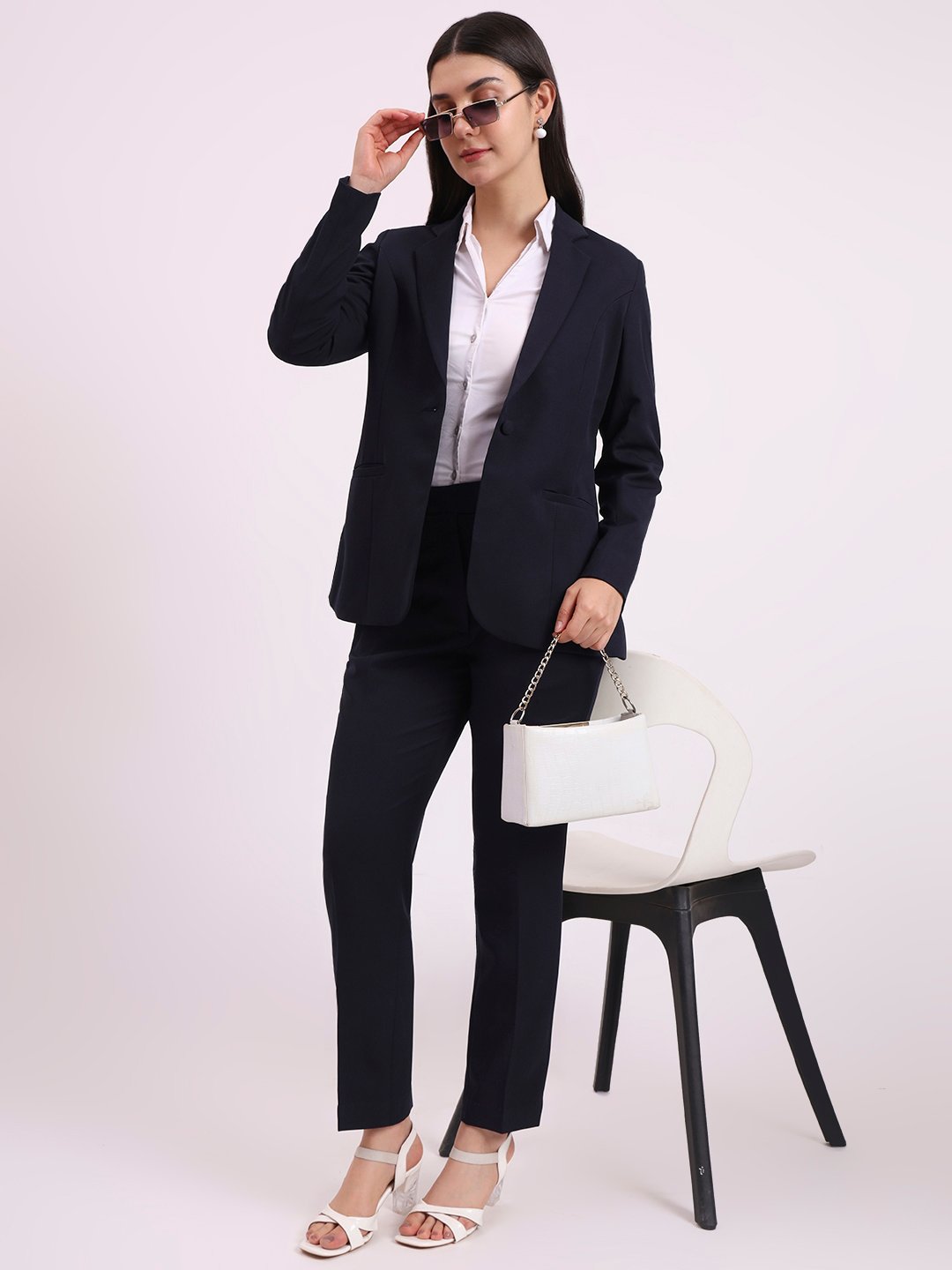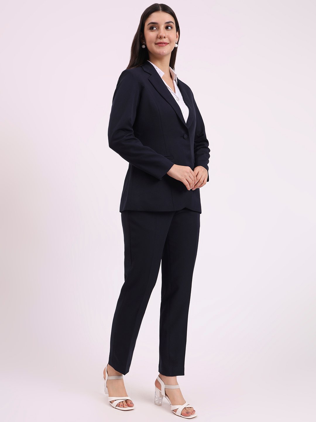 Apsra Boutique Navy Blue Two-Piece Women’s Suit Set – Blazer & Pants