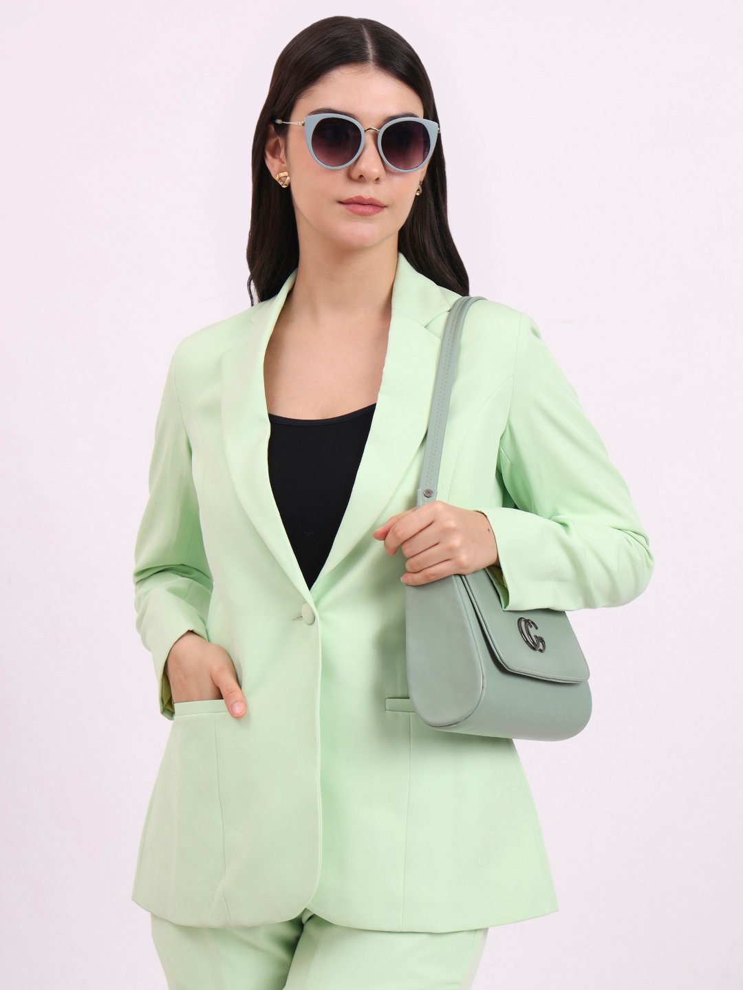 Apsra Boutique Single Button Green Blazer for Women – Formal & Party Wear