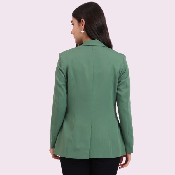 Single Button Dark Green Color, Notched Lapel Collar,Full Sleeves,Official & Party Wear Blazer For Women, Regular Fit